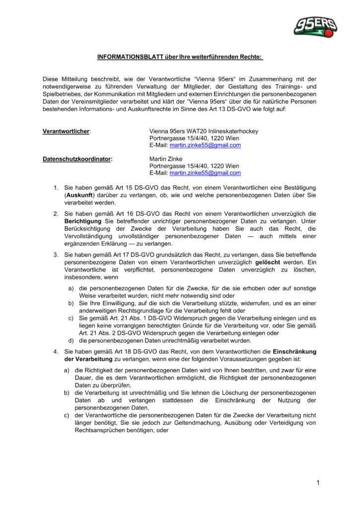 10.2. Wenden Sie sich bezüglich Ihrer Rechte bitte an uns unter martin.zinke55@gmail.com oder schreiben Sie an: Vienna 95ers WAT XX, z.H. Martin Zinke, Portnergasse 15/4/40, 1220 Wien.